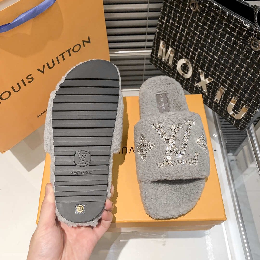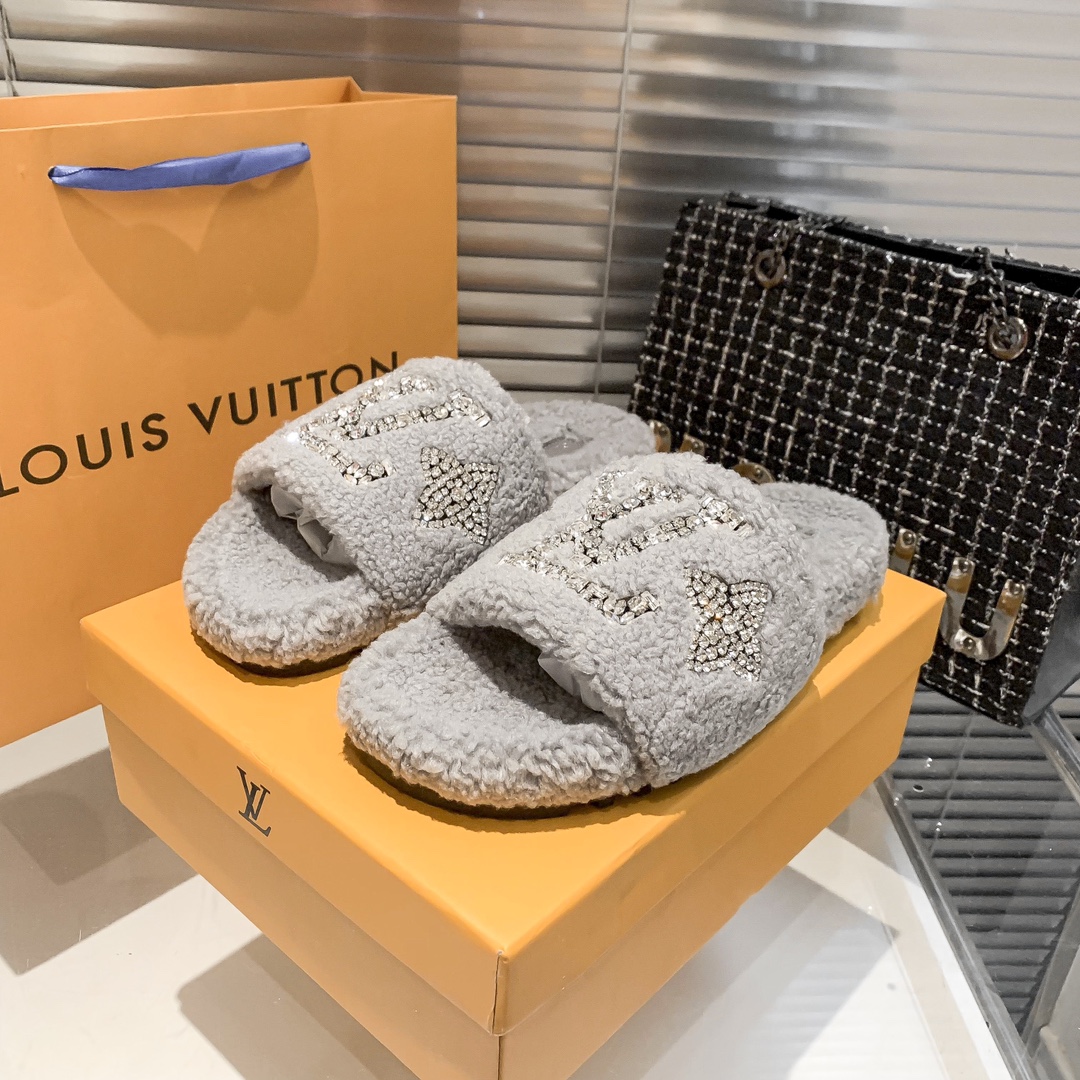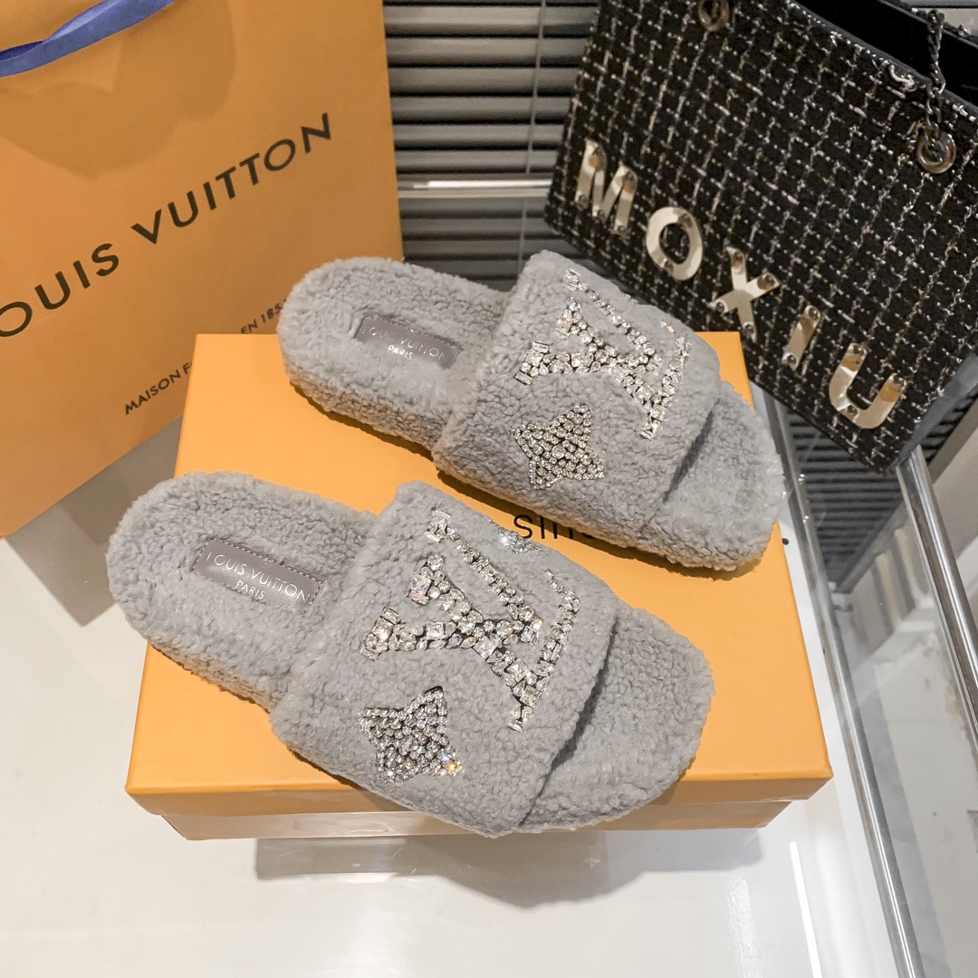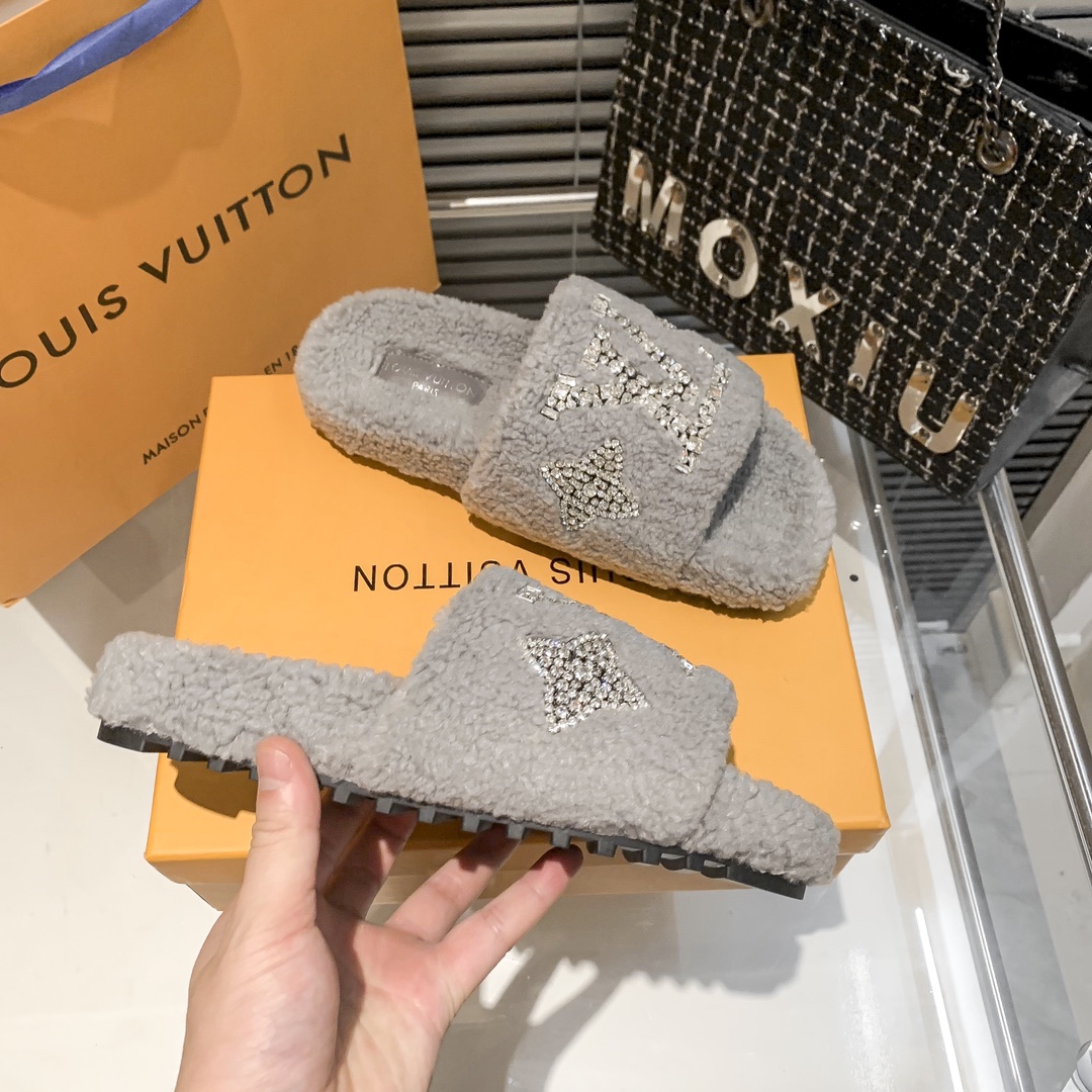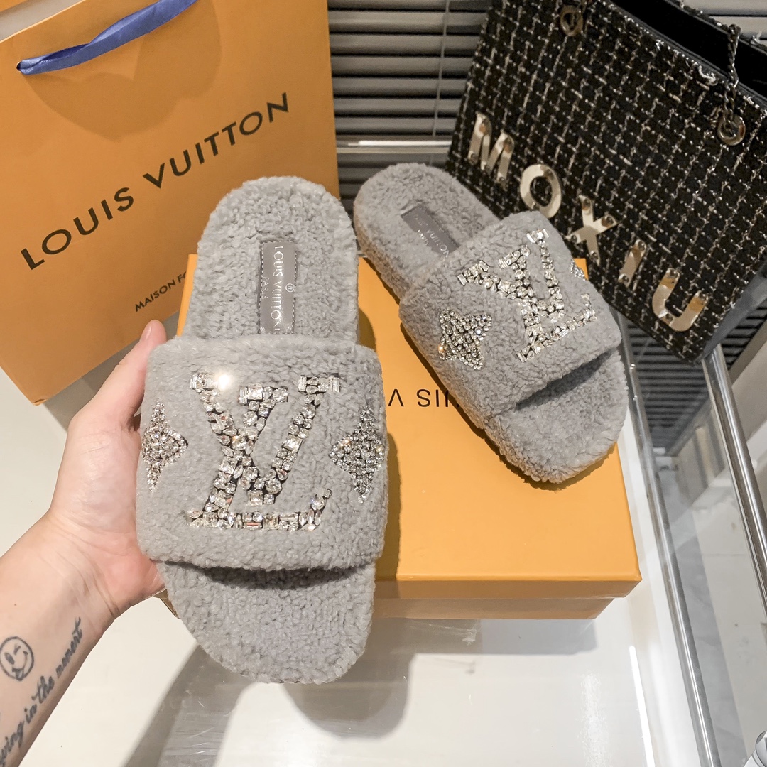 Louis Vuitton rhinestone fur slippers quantity