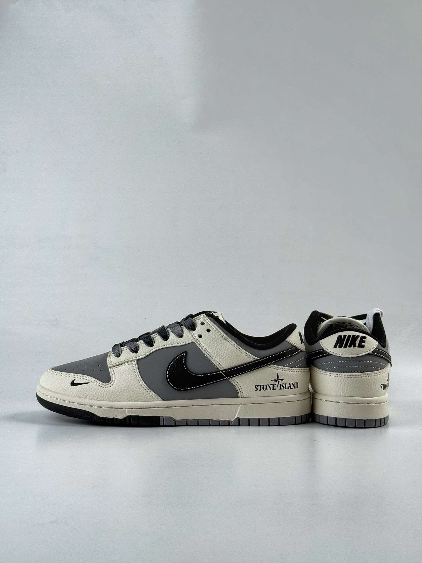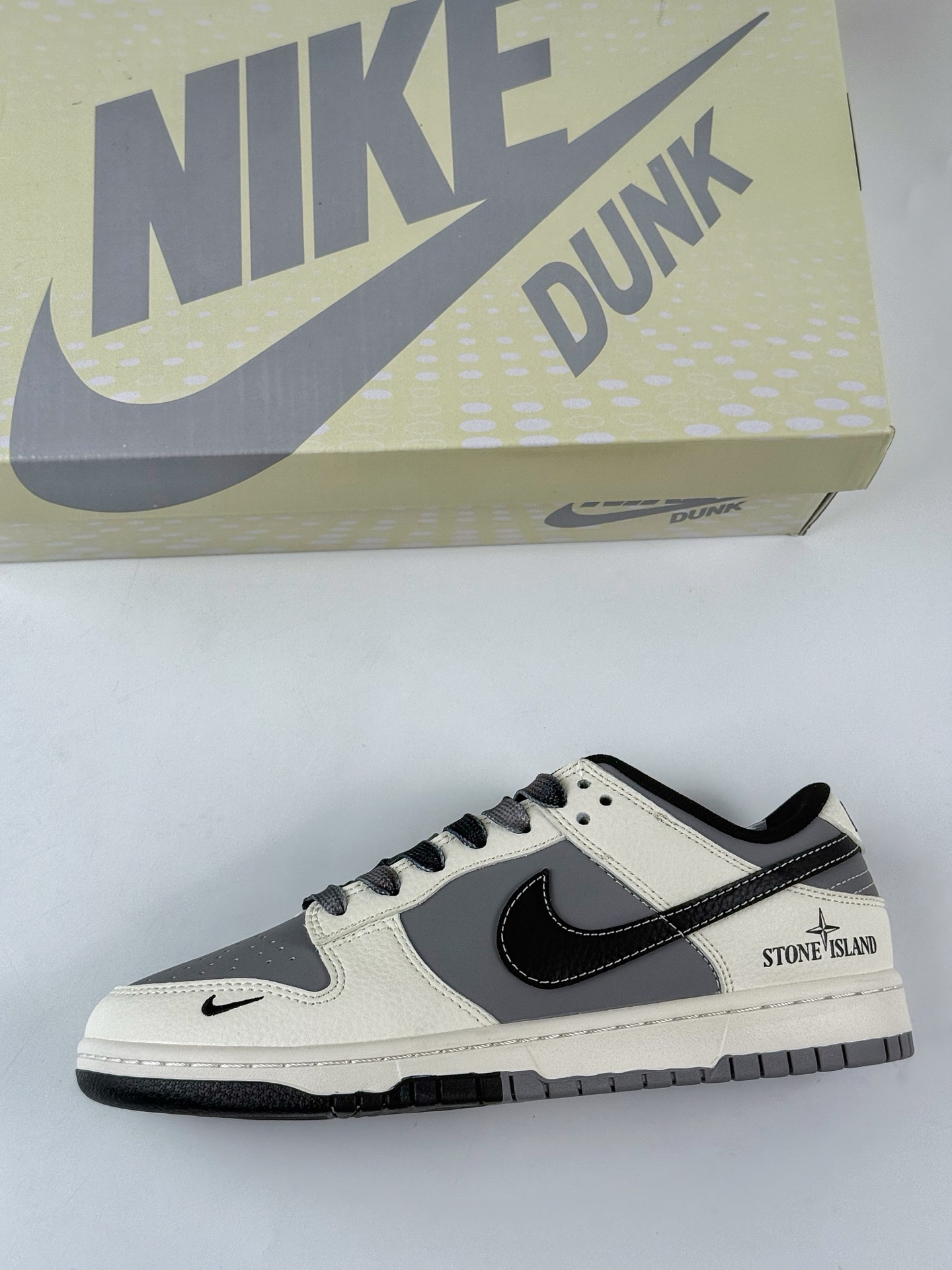 Nike SB Dunk Low x Stone Island White, Grey and Black Swoosh